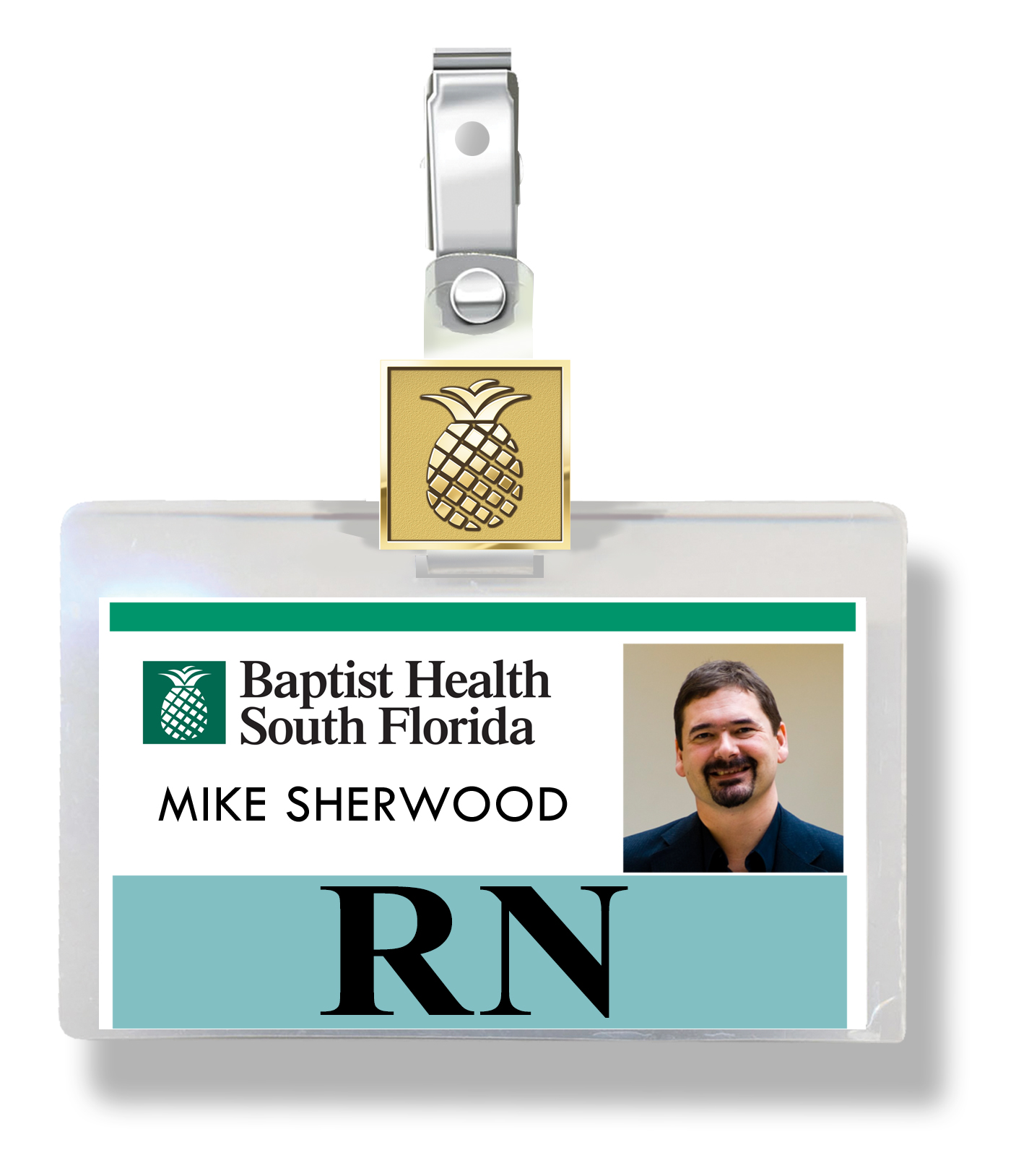 A pineapple logo - the international symbol of hospitality - is the centerpiece of this custom gold santblast and polished custom badge holder emblem.