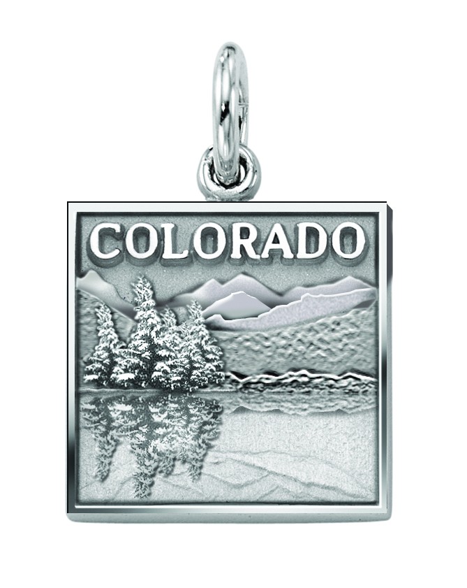 The scenic lakes and mountains of Colorado look so serene on this custom sterling silver trip charm.With trip details and dates on the back, it is a truly one-of-a-kind keepsake.