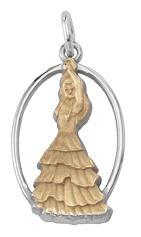 A beautiful flamenco dancer is modeled in this custom cut-out two-tone trip charm for Spain.With trip details and dates on the back, it is a truly one-of-a-kind keepsake.