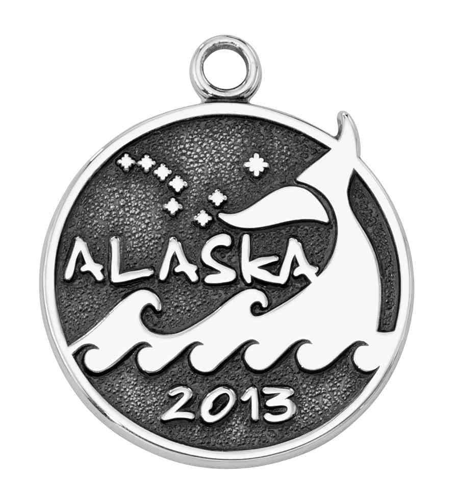 A whimsical whale tail pops out of the water on this custom sterling silver Alaska trip charm.With trip details and dates on the back, it is a truly one-of-a-kind keepsake.