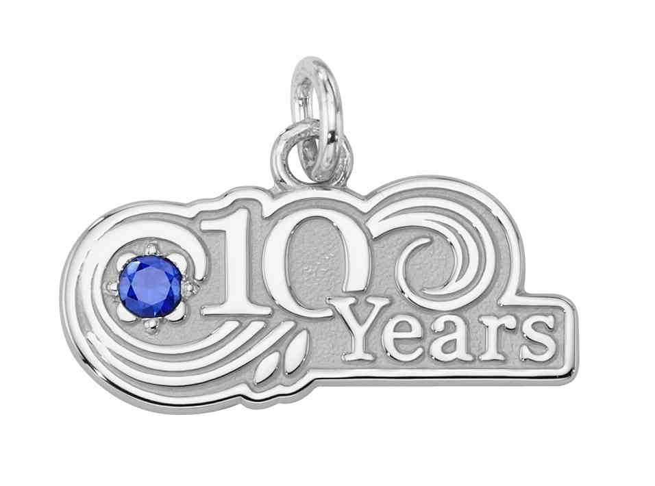 A blue sapphire adorns this custom sandblast and polished 10 Year recognition award charm. A beautiful way to recognize loyal years of service.