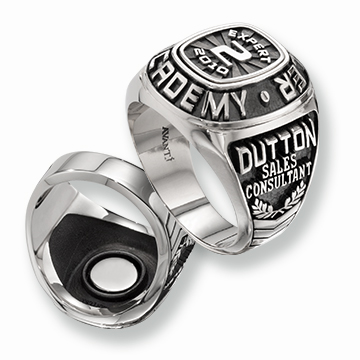 Sales award jewelry is traditionally only given to the very highest of achievers and thus establishes the recipient as a true professional in their field. The sales award ring in particular is a much coveted recognition award – particularly for sales reps that meet with customers outside the office (and thus can’t show off a plaque or trophy).