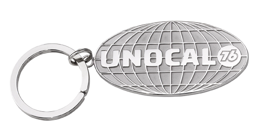 The UNOCAL logo site centerstage on this custom sandblast and polished globe shaped keytag. A great brand awareness give-away.