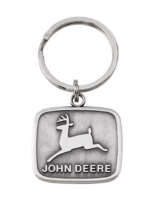 The iconic John Deere deer logo is siloetted in this custom antiqued silver keytag. A great give-away for new John Deere tractor owners.