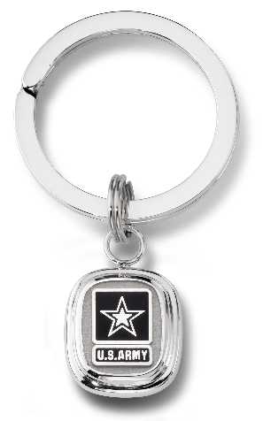 A US Army logoed insert is in the center of this custom sterling silver keytag. A great gift for the Army person or family member in your life.
