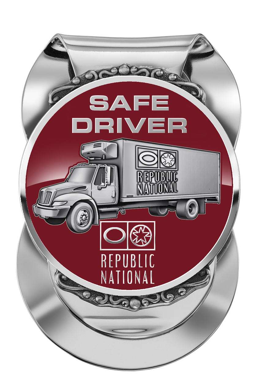A refrigerated truck is the centerpiece of Republic National Beverage's custom safe driver money clip award.Presented to those fleet drivers with the very best safe driving records.