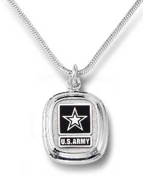 The US Army logo is offset with black color-fill on this elegant custom sterling silver sanblast and polished necklace pendant. Consider this for a special gift to the soldier in your life.