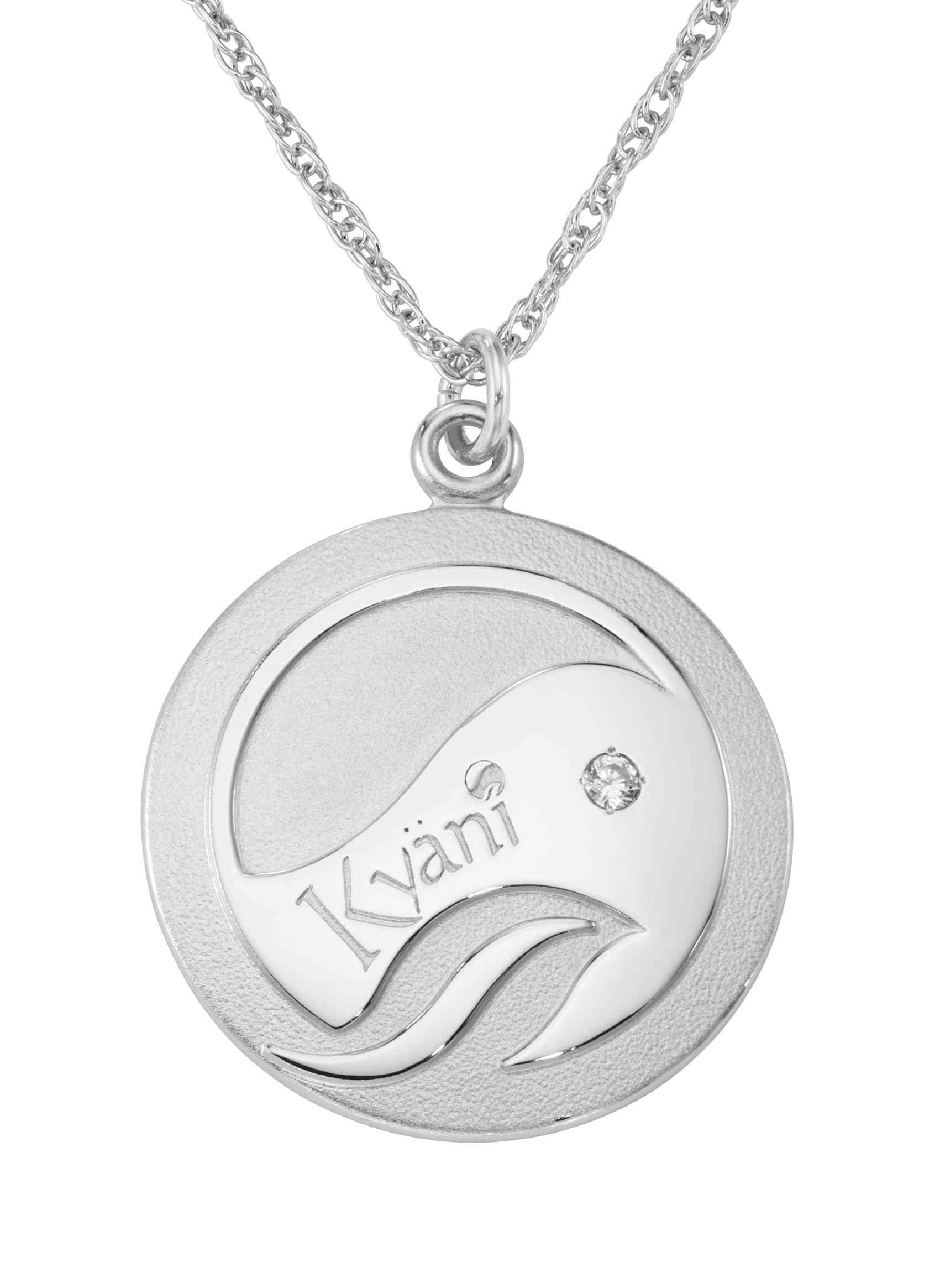 The Kyani wave and leaf logo is artfully embodied in this custom sterling silver necklace pendant. Part of Kyani's award recognition program.