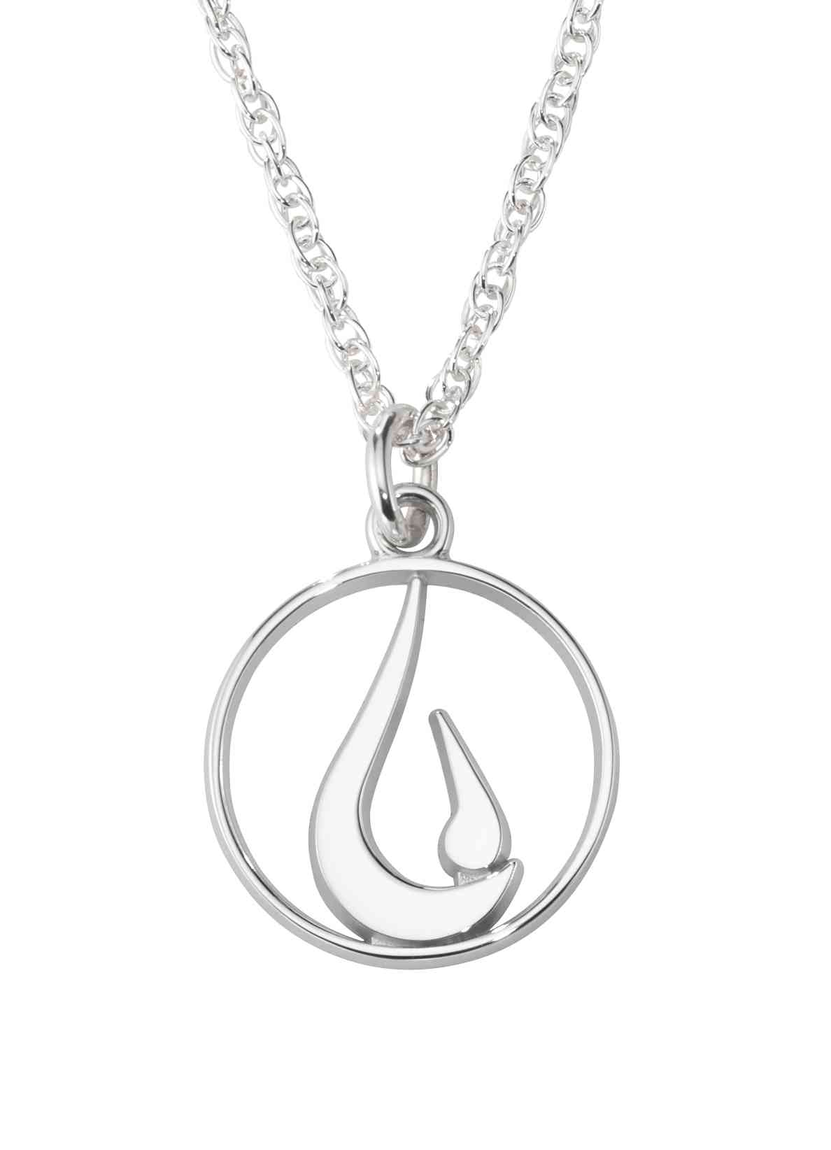 A pierced fire logo is encircled with high polished silver in this custom sterling silver necklace pendant. A great employee service award or client gift.
