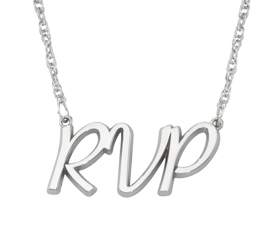 The scripted "RVP" text looks fun and stylish on this festoon chain. Indicating career level at the ACN Company, it is a coveted award piece.