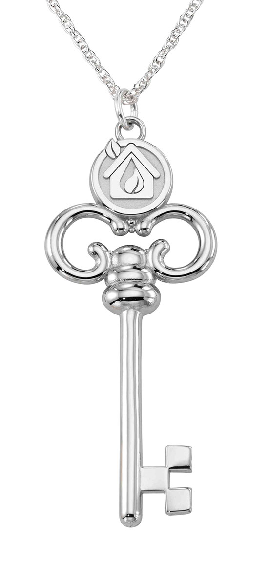 The Norwex logo sits subtly at the top of this fashion forward custom key shaped necklace pendant. Part of the Norwex consultant recognition award program.