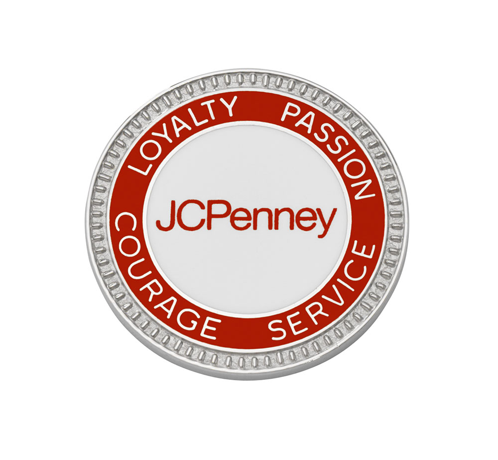 JCPenny awarded employees who have gone above and beyond with this custom logoed lapel pin. Metal detailing around the edges adds a bit of design flair.