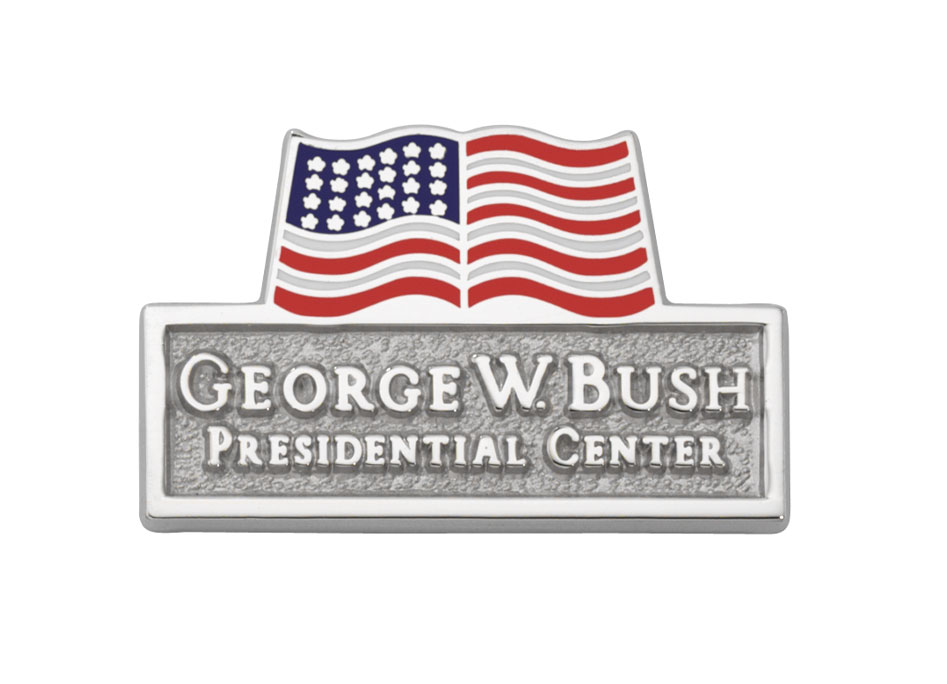 The George W. Bush Presidential Center held an event where they thanked their generous donors with this custom lapel pin. Red and blue color-fill is used to color in the American flag logo.