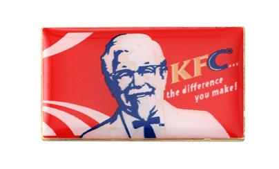 KFC thanked its employees for going above and beyond with this staff appreciation pin. The logo, text, and colors have been taken from a custom designed image and reproduced directly on top of the metal pin.