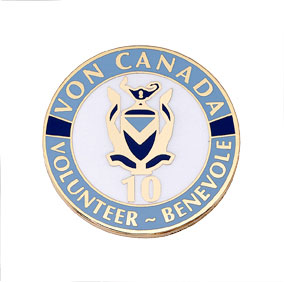 The Victorian Order of Nurses in Canada thanked its dedicated volunteers with this custom length of service pin. Below the logo is the number of years the volunteer has been with the organization.