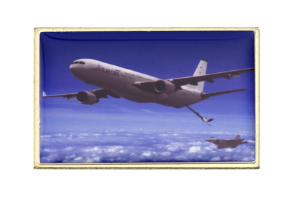 This custom pin was made using a photo which was then printed on metal. This pin was used to inspire airline employees to soar to new heights.