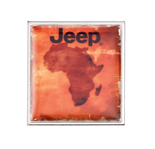 This custom pin was given to the attendees of a Jeep event held in Africa. This amount of detailed imaging is achieved by reproducing a photo directly on metal.