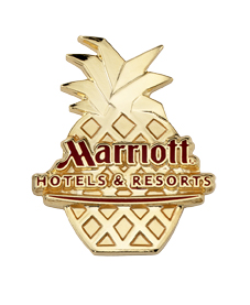The international symbol for hospitality - the pineapple - gives this lapel pin its shape, while gold sandblast and polished metal gives it depth. Employees wear this pin to highlight Marriott's hotels and resorts.
