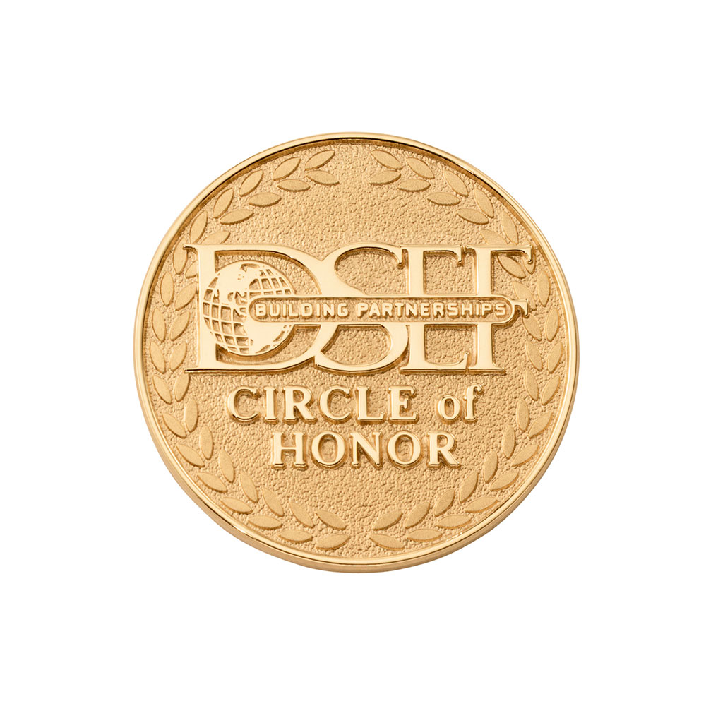 The Direct Selling Education Foundation awards those who make extraordinary contributions with this highly coveted "Circle of Honor" medallion pin. A laurel wreath frames the DSEF logo and the achievement is displayed below.