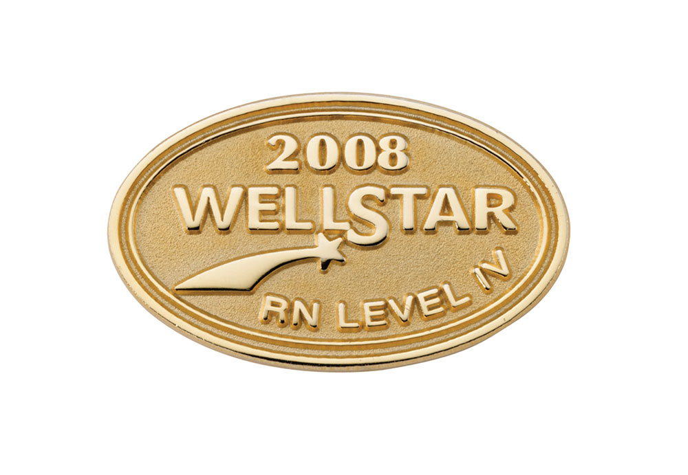 This custom lapel pin is proudly worn by nurses who have achieved career level 4 at WellStar Health System. The pin demonstrates WellStar's desire for high standards, and encourages others to continue to achieve.