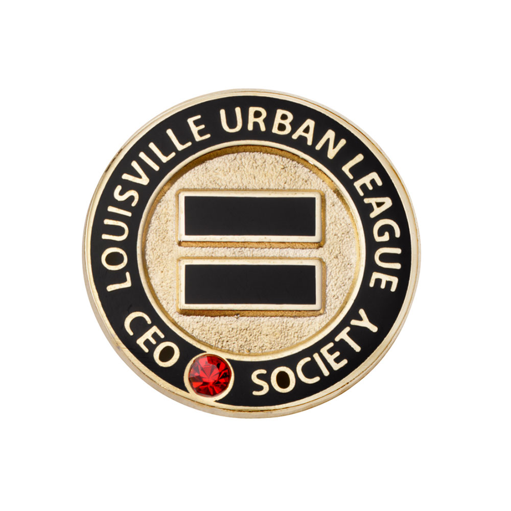 Members of the Louisville Urban League's CEO Society were awarded this handsome custom lapel pin. Black color-fill is used to highlight their equal sign logo and a ruby adds their organization's color.