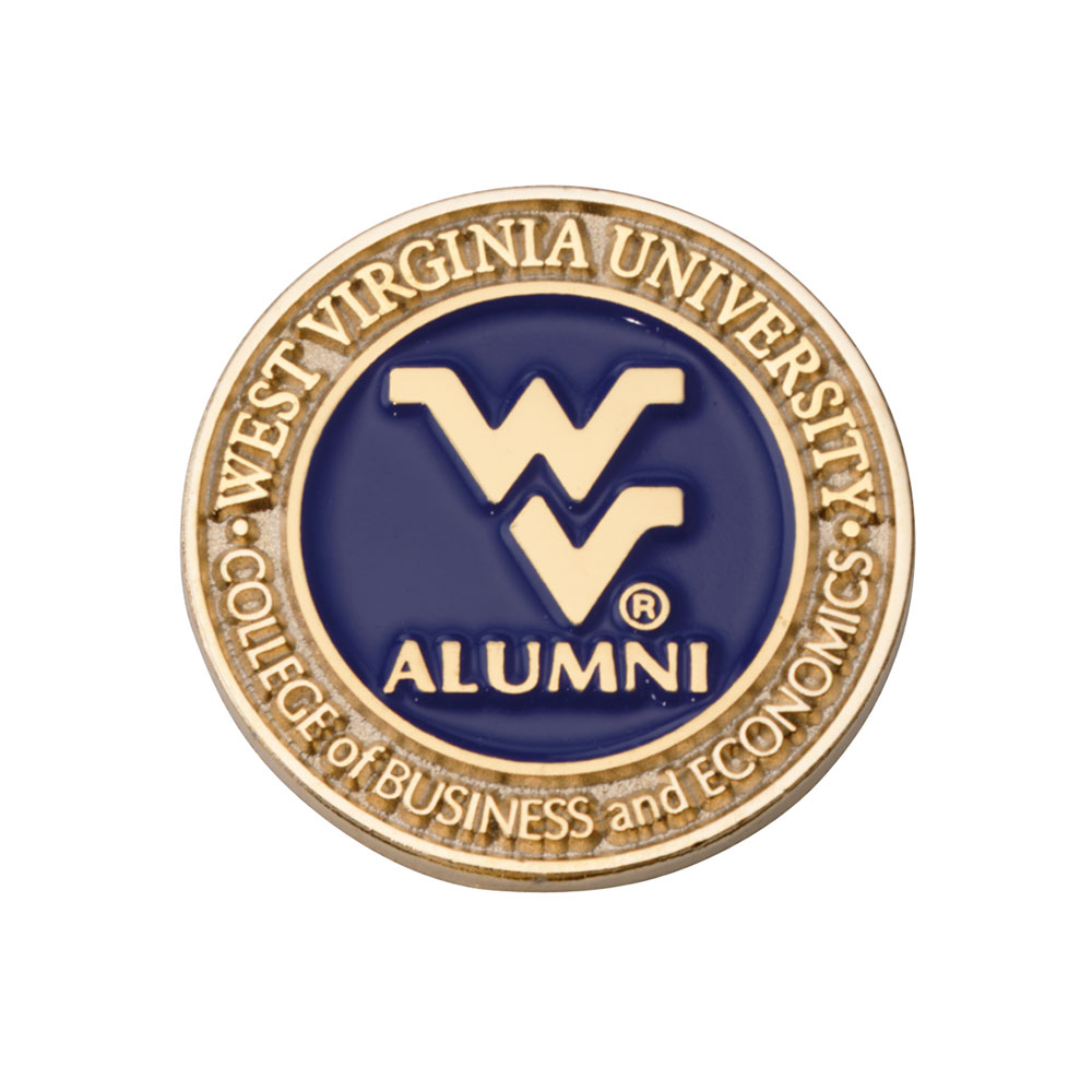 Distinguished school pride is on display here in this custom West Virginia University Alumni lapel pin. Blue color-fill creates focus around the university's logo and allows the school colors to shine.