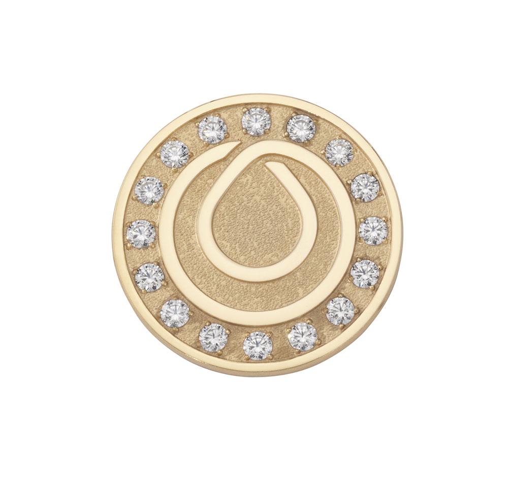 This length of service award pin features this company's polished contemporary logo against a textured background. Diamonds create a celebratory ring around the logo and represent the recipient's level of achievement.