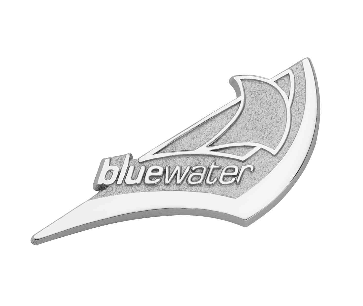 The Bluewater logo makes for a dynamic lapel pin. These pins were cast in various metals and given to employees based on their achievement level.