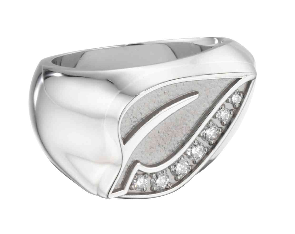 The company logo is the star of this sophisticated and modern platinum men's award ring. Diamonds gently accentuate and add sparkle to the logo.