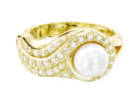 A gorgeous pearl is wrapped in ribbons of diamonds in this glittering 10 karat white gold women's award ring.