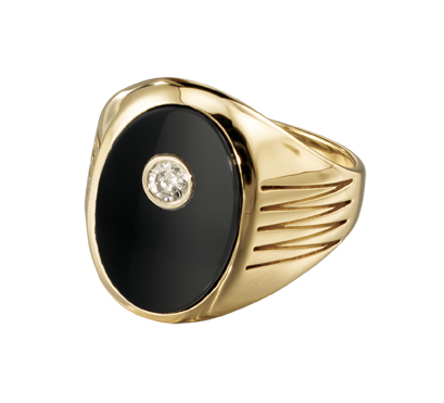A large black onyx stone is set into this elegant sterling silver men's award ring.