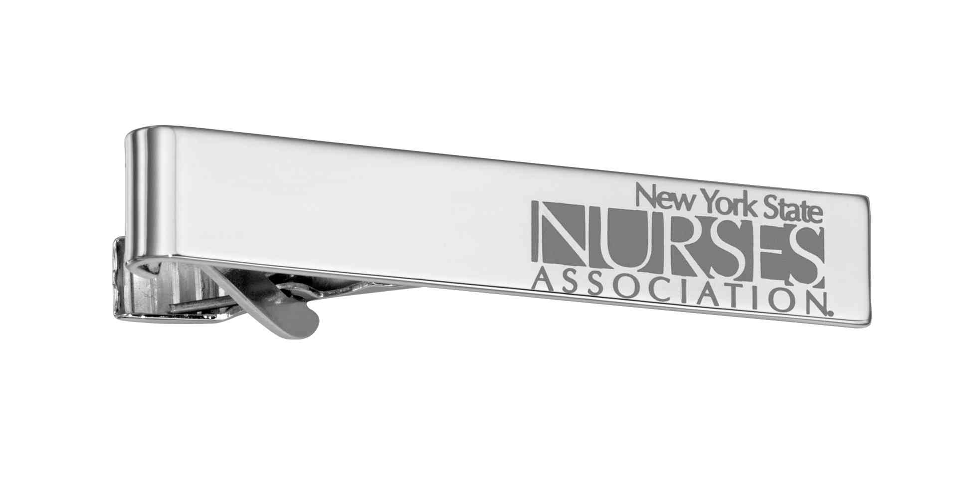 The New York State Nurses Association logo is artfully frost engraved onto this custom wide style silver tie bar.A great way to show your support for this fine organization.