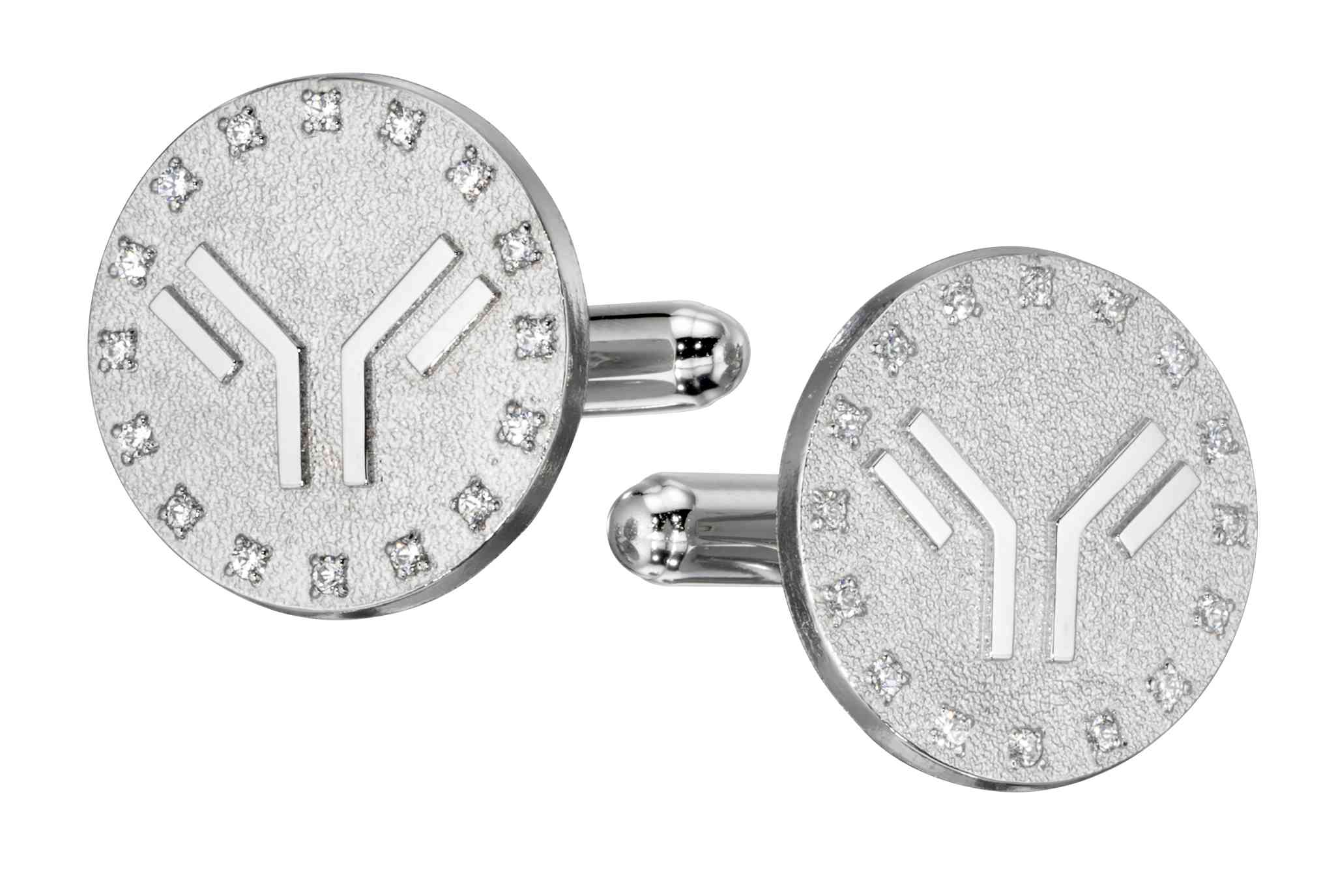 Diamonds circle the organization's logo in these simple yet stunning cufflinks. The polished metal logo contrasts against a more textured background for some added subtle style.