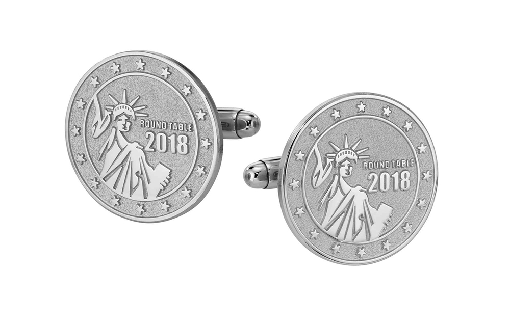 Lady Liberty proudly stands in these custom silver sandblast and polished cufflinks. Given to member attending the 2018 Roundtable Convention.