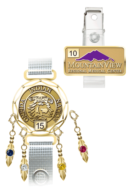 For employees required to wear ID, a security card, or visible license on their person, custom years-of-service badge holder emblems are very popular as a functional, wear-every-day award.