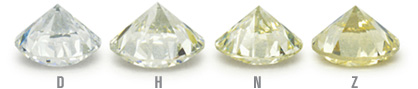 Because a colorless diamond allows more light to pass through colorless diamonds emit more sparkle and fire. The Gemological Institute of America’s (GIA) professional color scale that begins with the highest rating of D for colorless and travels the alphabet to grade stones with traces of very faint or light yellowish or brownish color.