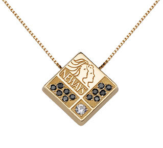Both black and white diamonds grace the top of this custom gold award necklace pendant for the Neways Company. Part of their top sales award recognition program.