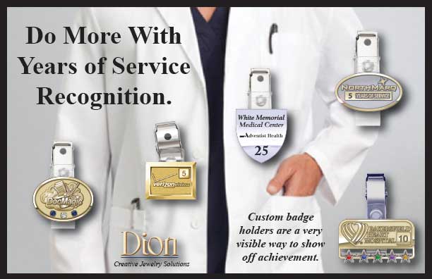 Let your Dion Account Manager help you get the "business you can feel good about." We can loan you sample trays and custom art for presentations and discuss the many opportunities available with custom jewelry in the healthcare industry. Call us today!