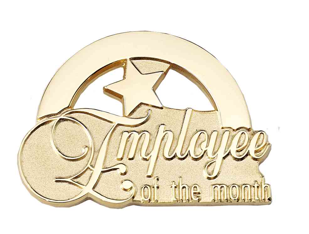 The customary "gold star" adorned this beautiful sandblast and polished gold Employee of the Month award pin
