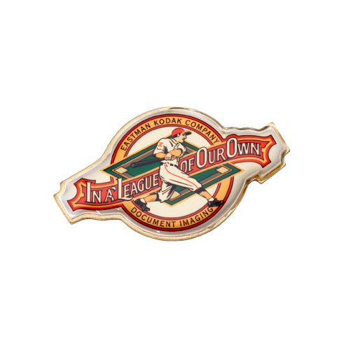 This vintage inspired pin features a photo image directly copied on to a custom metal shape.