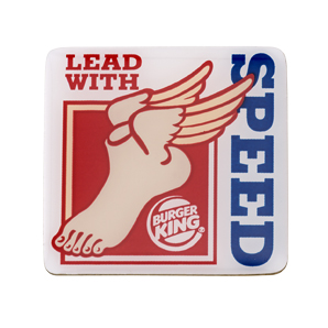 This custom leadership pin for Burger King features their logo alongside a Hermes foot. The text and colors have been taken from the design image and reproduced on top of the metal pin.