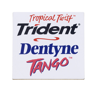 Both Trident and Dentyne's newest gum flavors are advertised on this promotional pin. The logos are directly reproduced on top of the metal pin.