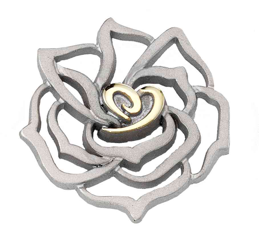 This beautiful design elegantly incorporates a swirling heart inside overlapping flower petals.