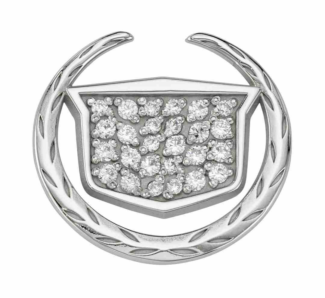 The Cadillac crest is filled with diamonds in this glamorous brand pin.