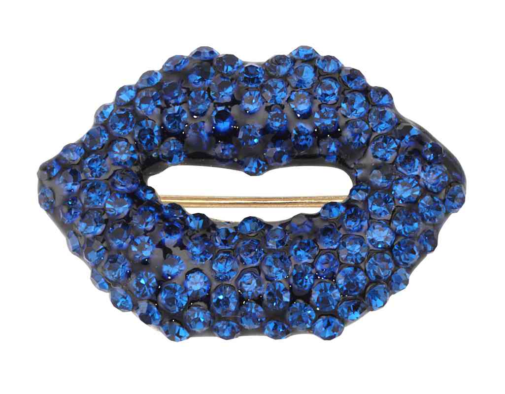 A pair of lips are completely encrusted with sapphires on this fun and glamorous pin.