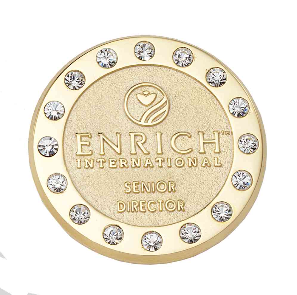Diamonds surround this stunning gold sandblast and polished career rank lapel pin for Enrich International