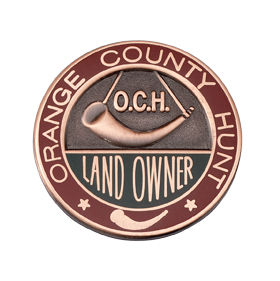 The Orange County Hunt Club recognized its land owners with this custom antiqued copper colored lapel pin with color-fill highlighting its modeled horn logo.
