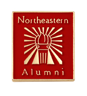 A torch shining bright embodies learning on this custom gold Northeastern University alumni lapel pin.