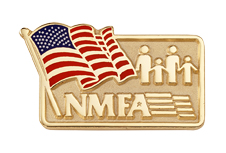 The American flag flies high on this custom gold sandblast and polished NMFA membership pin. National Military Family Association members will be proud to support this organization wearing this beautiful custom pin.
