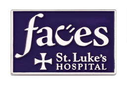 This custom silver with purple color-fill lapel pin highlights the "faces" that make up St. Lukes Hospital.